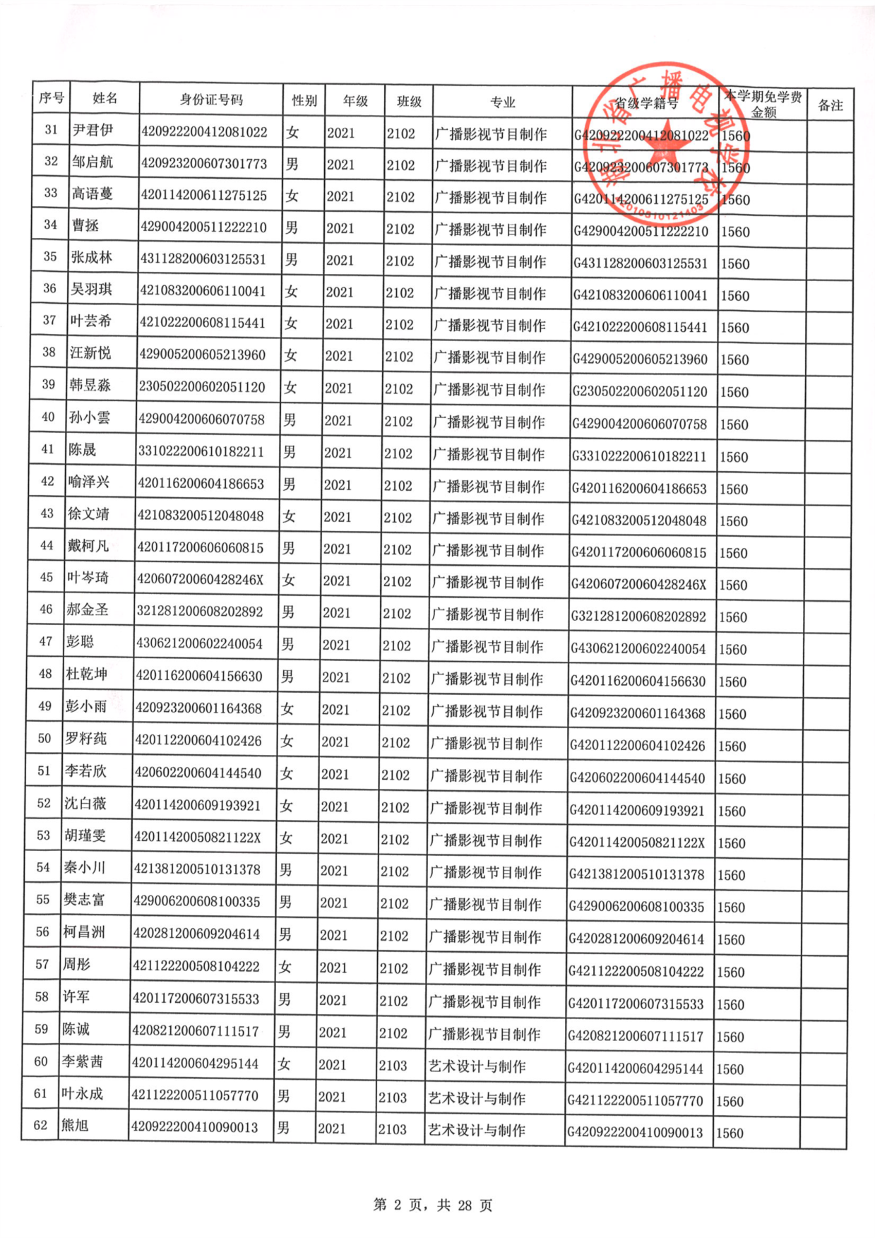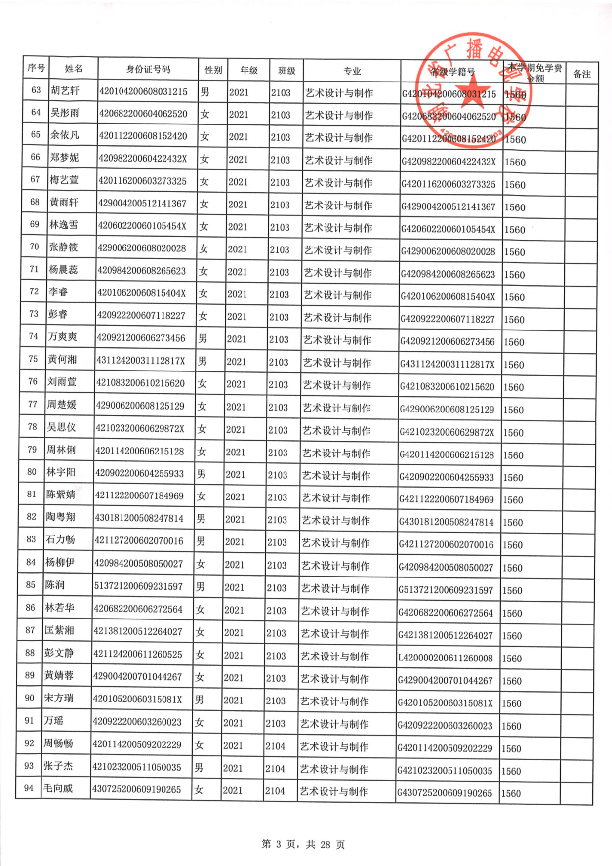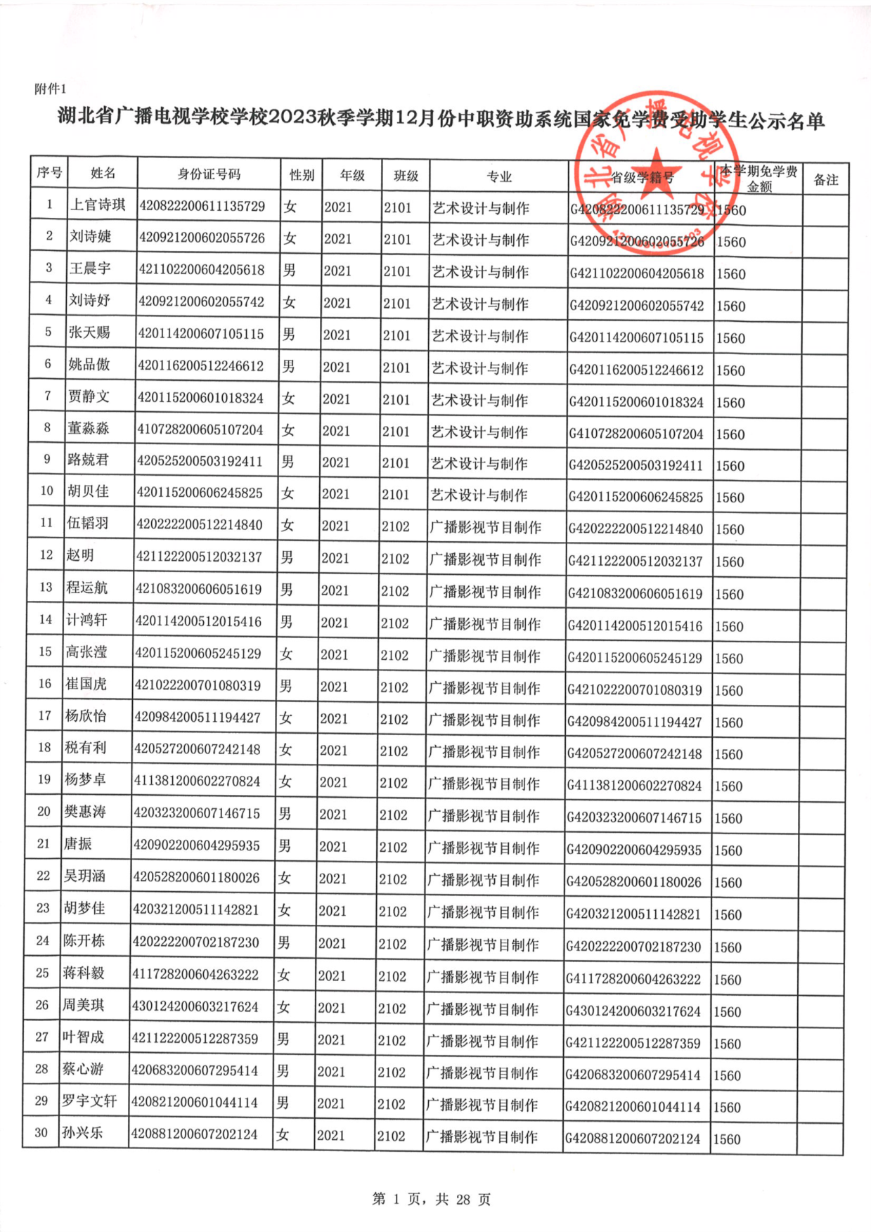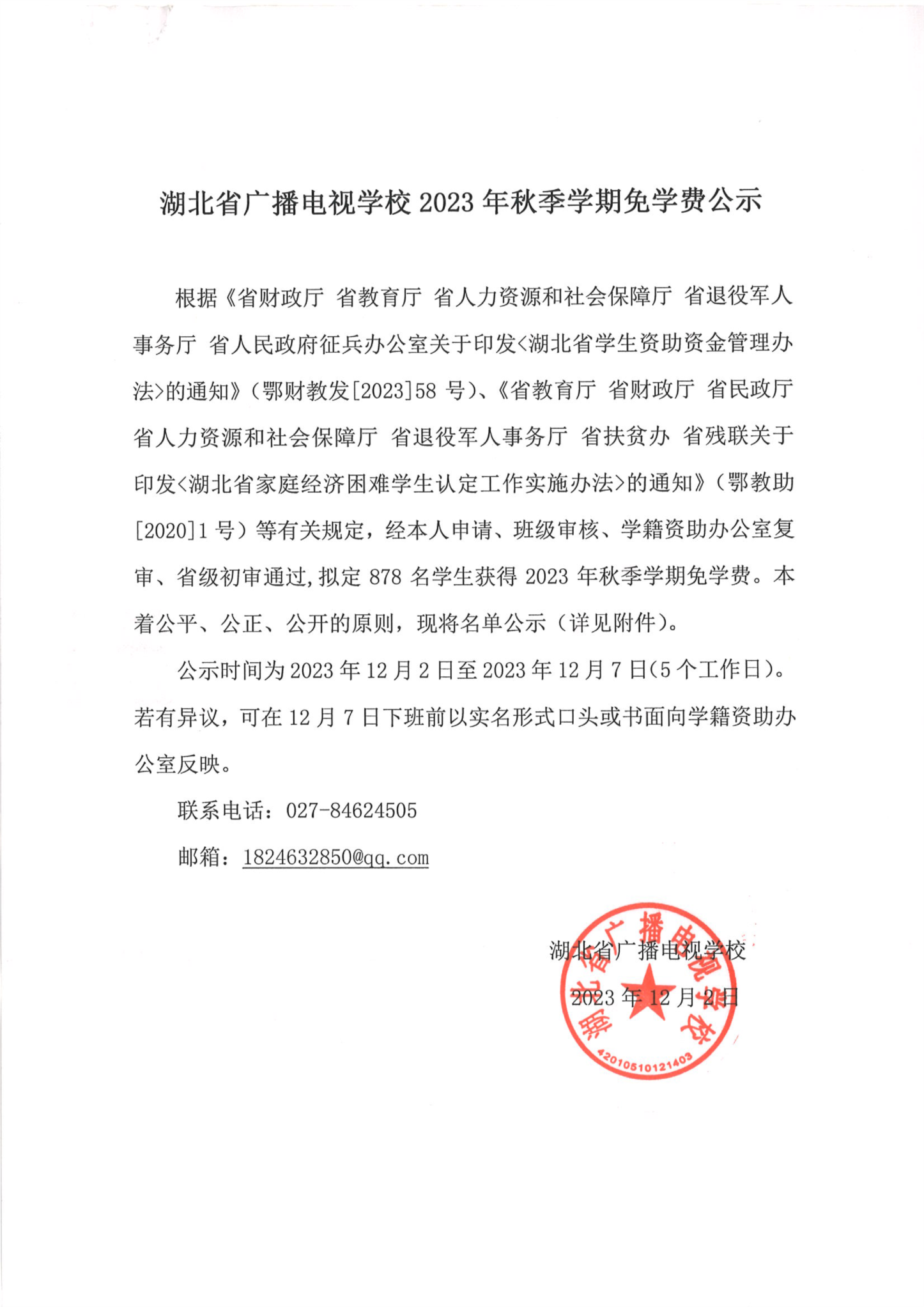 leyu乐鱼·官方web站登录入口2023年秋季学期免学费公示